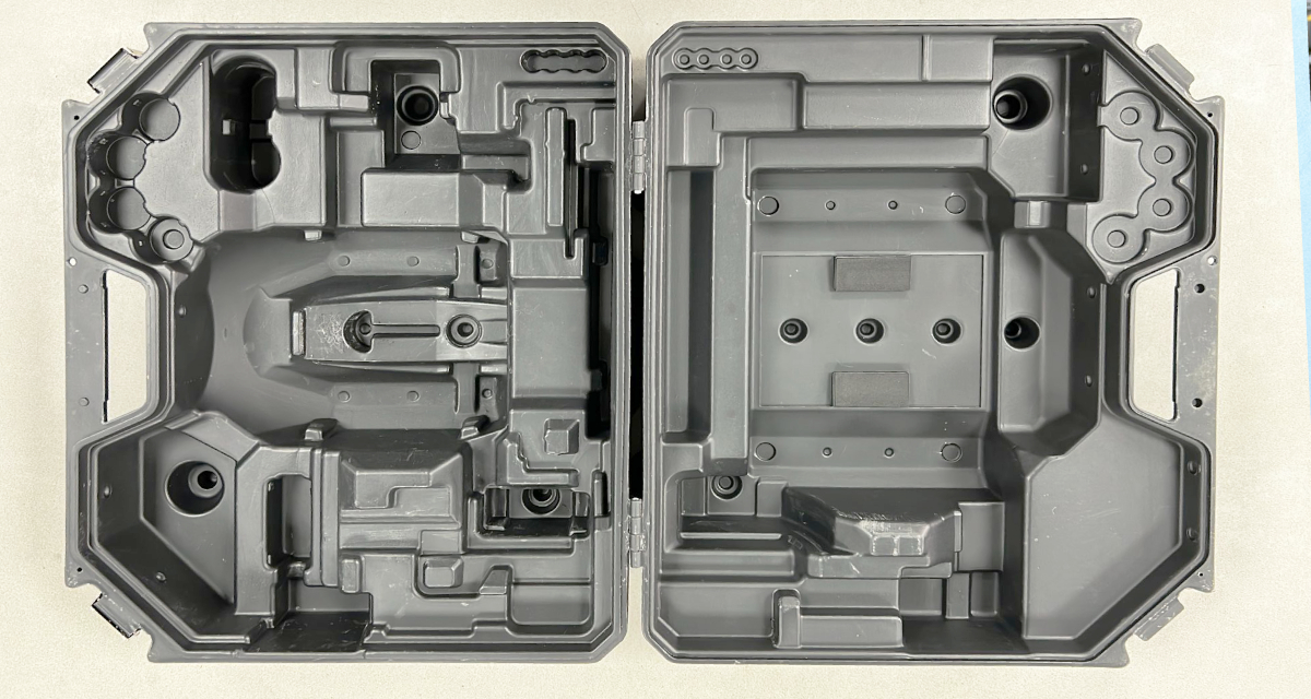 Lege, open koffer voor een Levelfix 860H / HVS laser met lichte gebruikssporen aan de binnenkant.