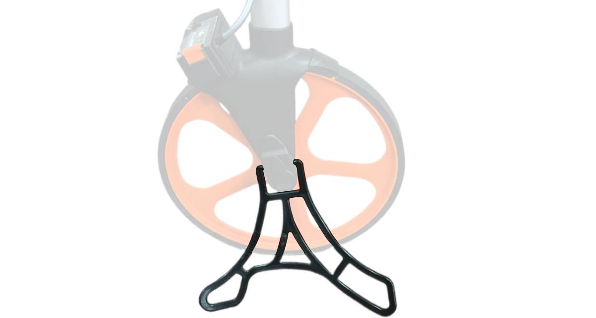 De standaard is licht van gewicht, storingsvrij en ontworpen om jarenlang mee te gaan – ook bij intensief buitengebruik. Hij is direct te monteren met de originele bevestigingspunten op het frame van het meetwiel.