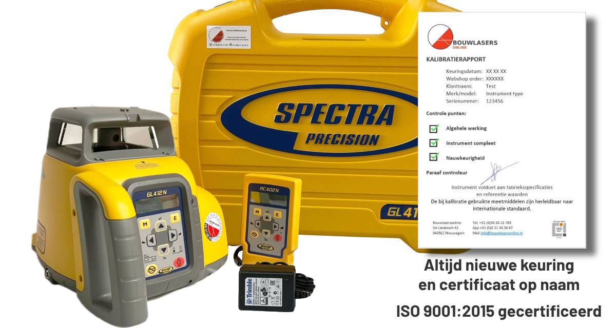Iedere Spectra GL412N wordt voor verzending volledig gekalibreerd en gecontroleerd in ons eigen servicecenter. Altijd met officieel kalibratiecertificaat – direct betrouwbaar en inzetbaar op ieder project.
